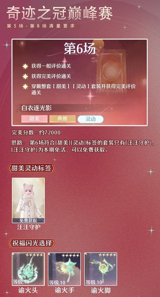 > 第6场符合[甜美][灵动]标签的套装只有[汪汪守护],[汪汪守护]为本期免活,可以免费获取。