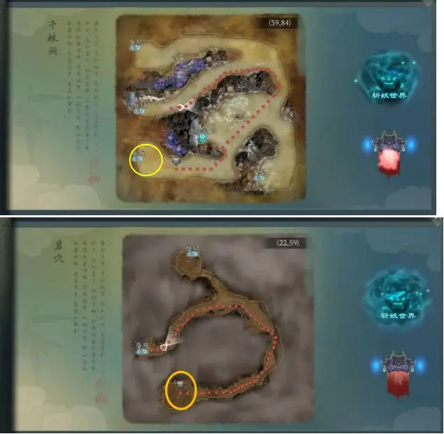 花果山云谷——千蛛洞——岩穴,左下打棺材怪,不周山石