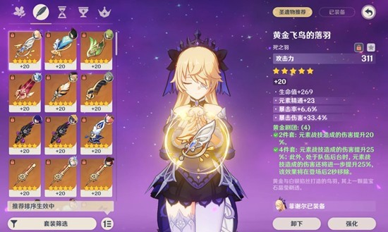 原神月之四版本菲谢尔培养攻略 菲谢尔圣遗物攻略