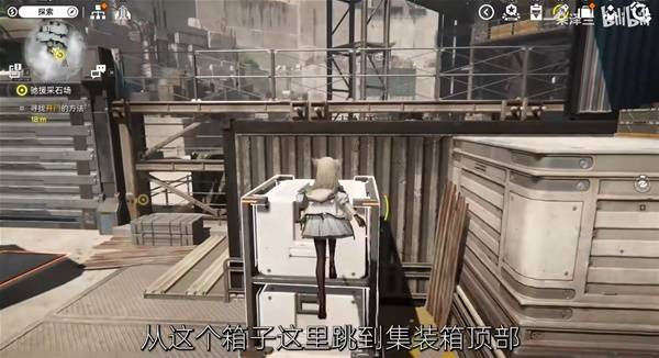 走到头后跳下去,下面有一大一小2个箱子,小箱子压机关开门,大箱子拉着出去。