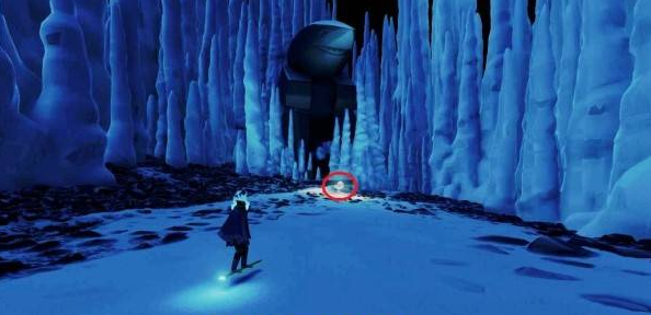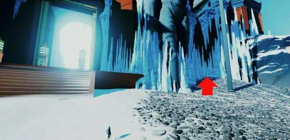 穿过柱子走廊中的管道后,在右侧倒数第三根和第四根冰柱之间可以看到贝壳。