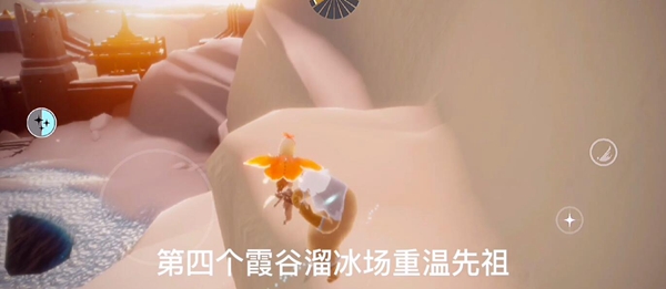 4、前往霞谷,在霞谷滑冰场右侧雪山上可以找到重温先祖。