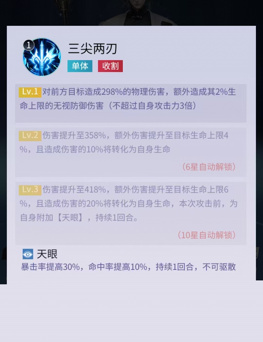 杨戬在职业划分中明确归属于战士定位,核心战斗风格为魔化形态下的高爆发物理输出。其主动技能“三尖两刃”可对正前方目标施加高额基础物理伤害,并额外附加相当于目标当前生命上限2%的无视防御伤害,该效果在对抗高防高血量单位时尤为关键。