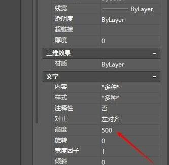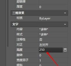 3、按下后,会在左边弹出属性窗口,在其中找到文字“高度”