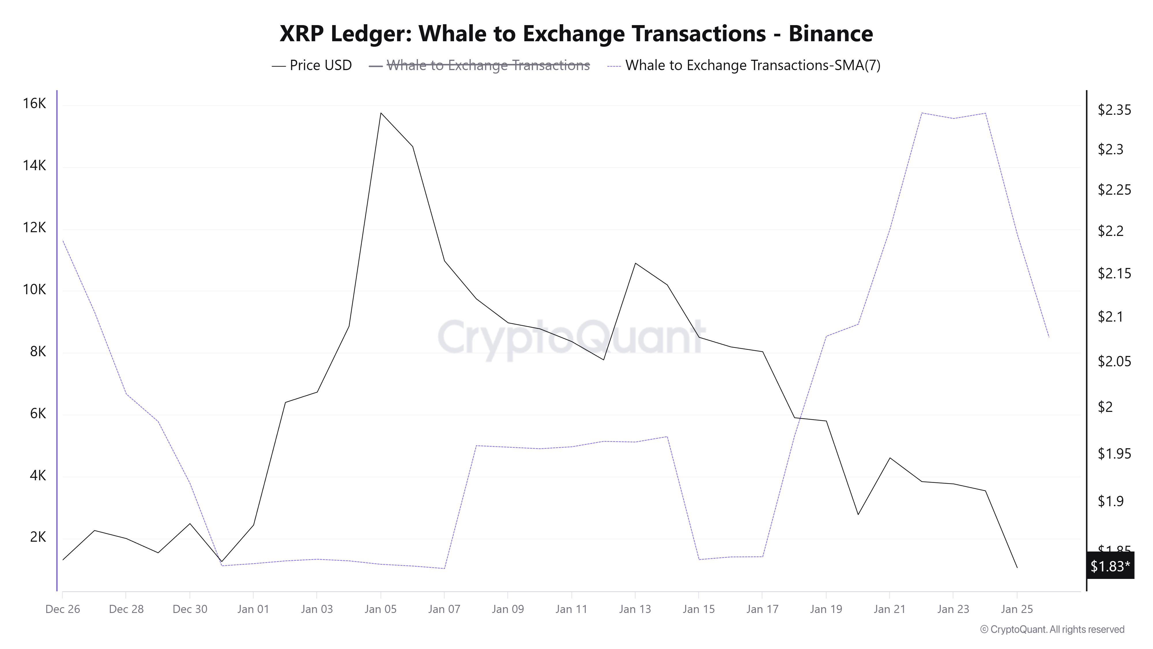 鲸鱼将XRP转移至CEX,价格测试关键支撑位