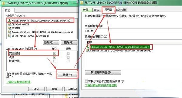 5、我们点击刚添加的administrator,然后勾选完全控制,再次点击高级,在切换到所有者,点击一下administrator,随后点击确定后保存即可。