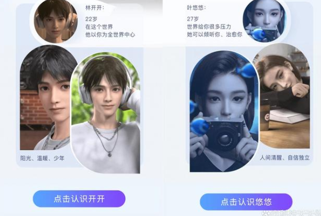 2、在AI侃侃里,林开开是一个22岁的阳光“小奶狗”形象,叶悠悠则是27岁设定,