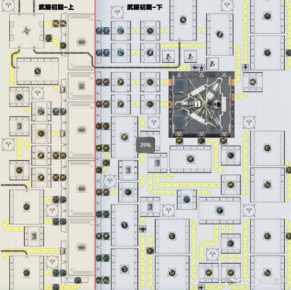 此蓝图包含了三种武陵特产:金装材料、芽针针剂和武陵电池,初期产能会较慢,建议可以先铺好等材料。