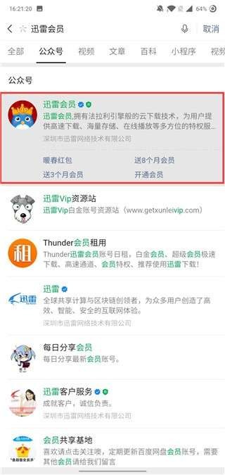 第一种领取方式需使用微信关注迅雷会员公众号。具体操作流程为:在微信搜索栏输入关键词,找到官方认证的公众号并关注。系统会立即推送欢迎信息,点击菜单栏指定按钮即可参与领取活动。