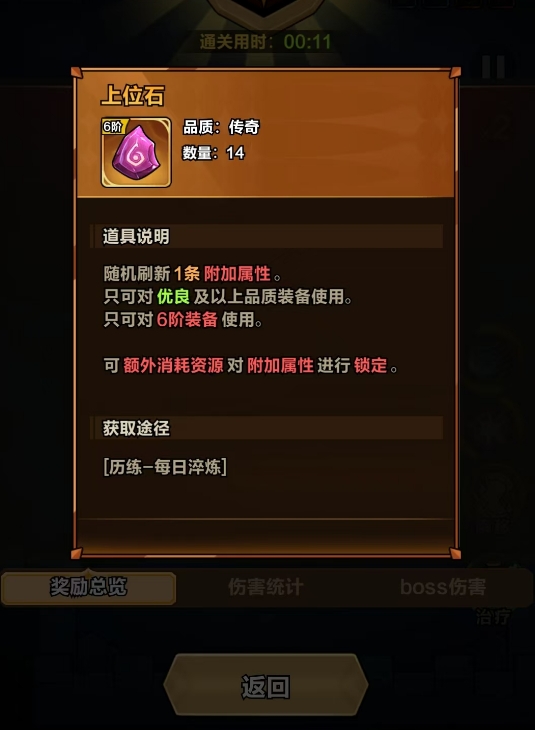 正式进入战斗后,玩家需在5分钟倒计时内击败关底BOSS。时限机制对角色综合练度提出明确要求:建议提前完成天赋加点、技能升级及符文搭配,使角色处于当前阶段最优输出状态。成功击杀后,系统即时发放当次挑战对应的上位石与下位石,可立即投入装备洗练界面使用;奖励数量固定,与实际耗时无关,只要在时限内达成目标即可全额领取。若超时未胜或角色阵亡,则本次挑战失败,不发放任何资源。