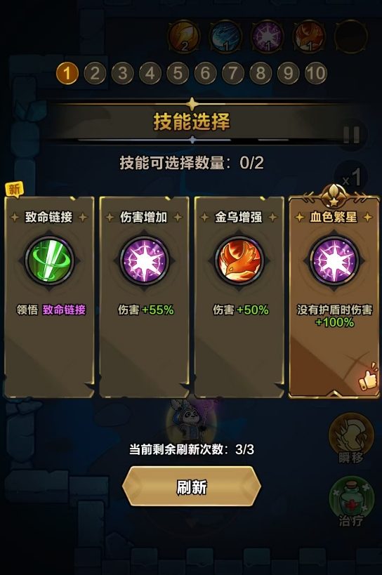 每次挑战开始前,系统将提供10组可选装备词条供玩家自由组合技能体系。这是整场战斗中唯一一次技能配置机会,且不占用当日挑战次数——若初次选择不满意,可直接退出并重新进入,再次刷新词条池进行挑选。请务必重视此阶段:后续战斗全程无二次调整窗口,所有技能释放逻辑均基于初始设定展开。