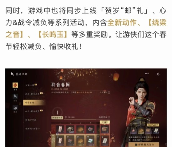 以上就是燕云十六声春节聆音小战令攻略,聆音池抽卡规则是什么的全部内容了,更多游戏资讯,攻略内容敬请关注,您的支持是我们努力的动力!