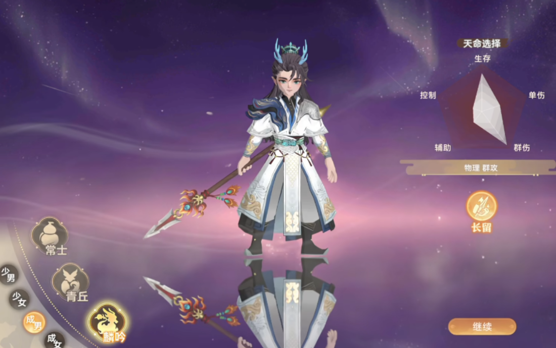 麟吟职业设有“成年态”与“少儿态”两种基础形态,每种形态下进一步区分性别选项。值得注意的是,不同形态会触发专属“天命系统”,而天命差异直接体现在五维属性(力量、灵力、体质、敏捷、神识)的初始分布与成长倾向上。例如,成年麟吟普遍拥有更高的灵力与神识成长率,少儿麟吟则在体质与敏捷维度具备显著优势。该设定决定了其在队伍中的功能定位存在本质区别。