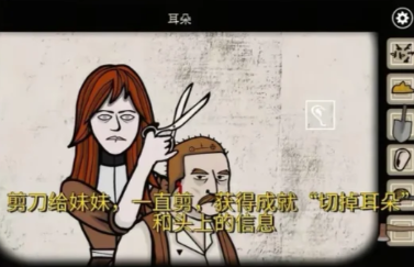 8、剪刀给妹妹,一直剪,获得成就“切掉耳朵”和头上的信息