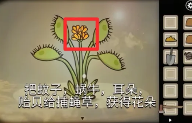 15、把蚊子、蜗牛、耳朵、贻贝给捕绳草,获得花朵