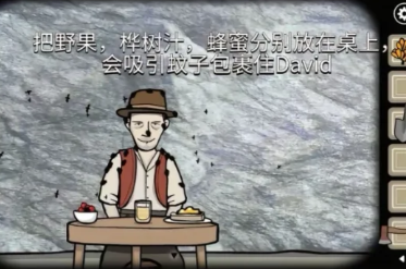 19、把野果、桦树汁、蜂蜜分别放在桌上,会吸引蚊子包裹住David