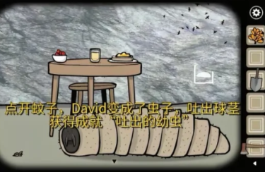 20、点开蚊子,David变成了虫子,吐出球茎,获得成就“吐出的幼虫”