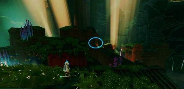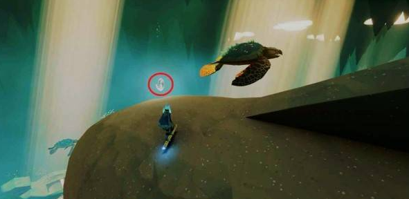 在两只乌龟脑袋所在区域,沿路网上爬到石板上方的屋顶,跳到沙瀑后面的窗户即可看到贝壳。