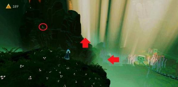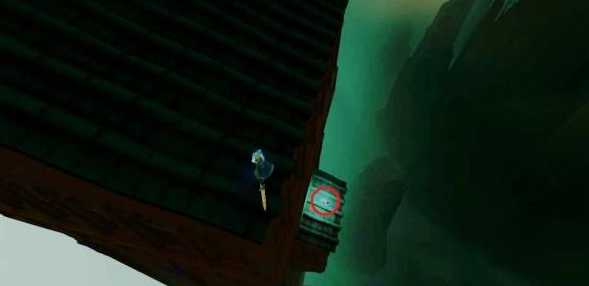 沿着第二条锁链返回第一个区域,从锁链附近的屋顶爬到左侧悬崖,走到尽头就能看到贝壳。