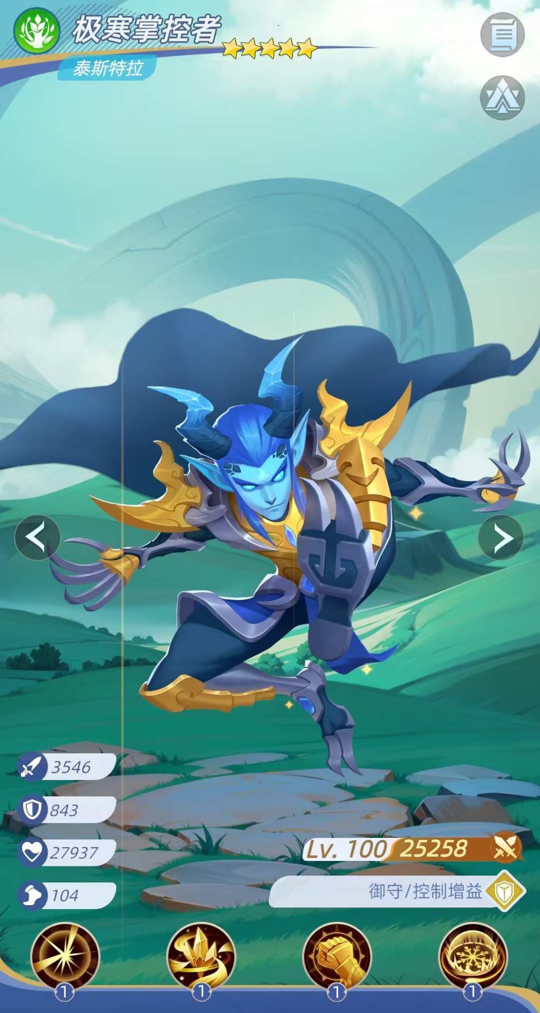 二技能具备被动回血特性:每回合开始时,若自身当前生命值低于最大生命值的50%,则恢复相当于最大生命值10%的生命值。该机制显著强化其续航能力,使其在辅助角色减员或治疗压力骤增时仍能维持前排站位稳定性。三技能“寒冰壁垒”为反制型减益技:每次受到普攻或技能攻击时,均有概率对攻击者施加1层“伤害降低”效果;技能等级提升后,额外附加1层“速度降低”效果。两类减益均可叠加至最高5层,持续压制敌方输出效率与出手节奏,为我方创造多轮先手优势。