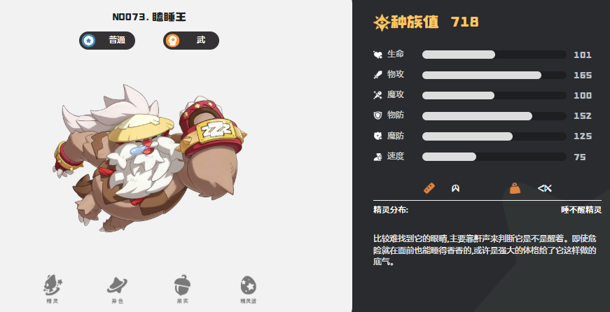 第二位是双属性精灵瞌睡王(普通/武系)。其核心天赋为“慢热型”,效果为:若登场前己方已有其他精灵完成一次行动,则瞌睡王入场时自动获得5点初始能量。该机制要求严格控制出场顺序——不可将其置于首发位,否则天赋无法激活。建议搭配一至两名行动优先级高、技能释放快的前排精灵,确保能量起点充足,保障后续技能链顺畅运转。