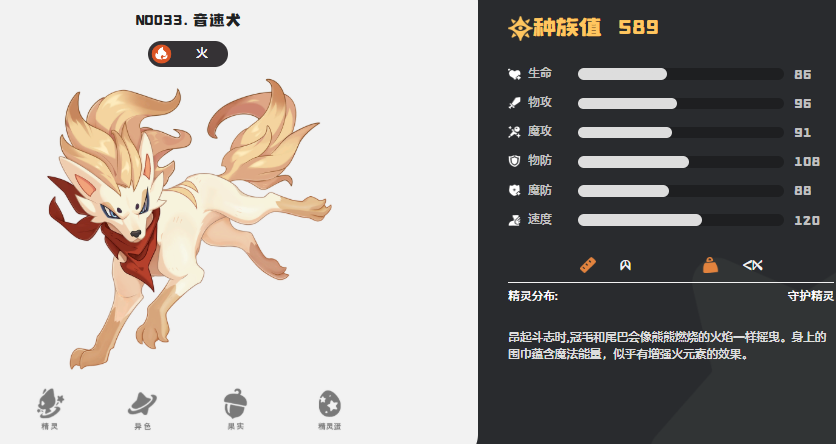 第四位是火系精灵音速犬。其战斗风格强调首回合压制力,天赋“专注力”可在登场当回合使物理攻击基础伤害提升100%。该增益仅限首次行动生效,不可重复触发,因此需配合高命中、低前置条件的物理技能(如“烈焰冲刺”“爪击”)实现瞬时爆发,适合用于速攻破盾或压制关键目标。