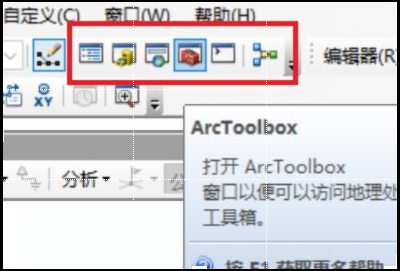 2、然后在“ArcMap”界面找到顶部工具栏“ArcToolbox”工具箱打开。