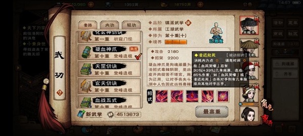 凝血神爪是即将新增添的拘魂阁顶级拳系武学,包含招式如下: