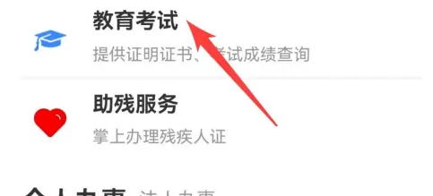 在新的页面,点击【教育考试】。