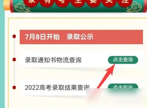 点击【录取通知书物流查询】。