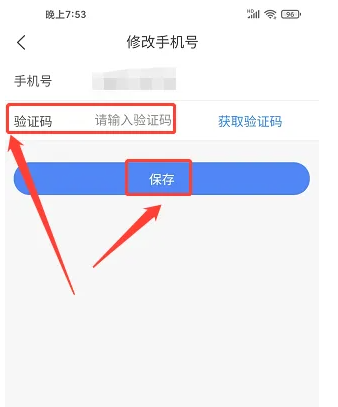 进入修改手机号窗口,输入验证码,点击【保存】。