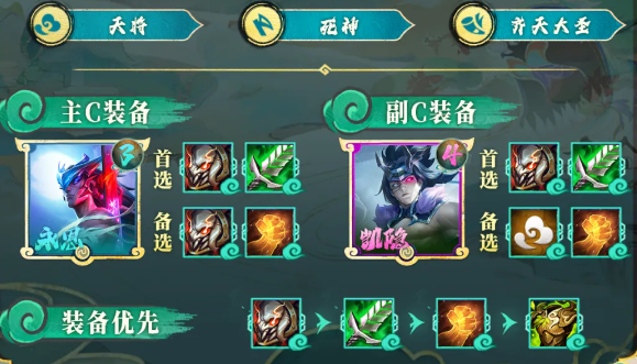 死神纹章→猴子,后期下掉千珏给猴子,不用换其他英雄