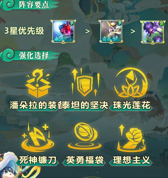 永恩不吃专属强化,但是拿战力强化,跟同行内战强度会高很多,3战力相当于T0阵容