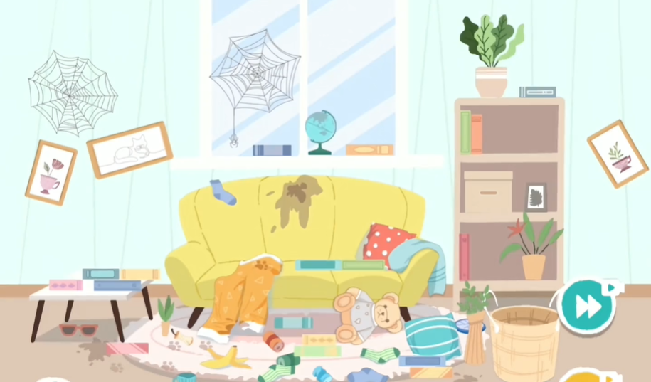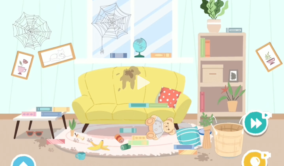 1、这一关要收拾的东西比较多,蜘蛛网,污渍、垃圾、娃娃、书本等各种物品都是需要玩家来完成的,其中的过程也是比较繁琐的。