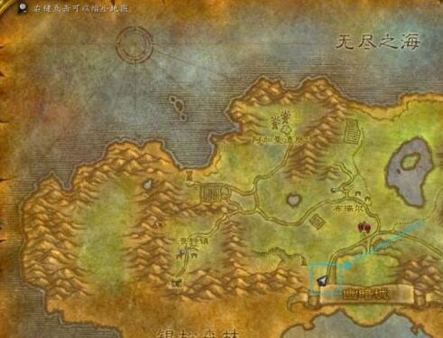 1、接完任务之后,沿着希尔斯布莱德丘陵一直向上走到达拉然巨坑,然后穿过洛丹米尔湖,到达幽暗城。