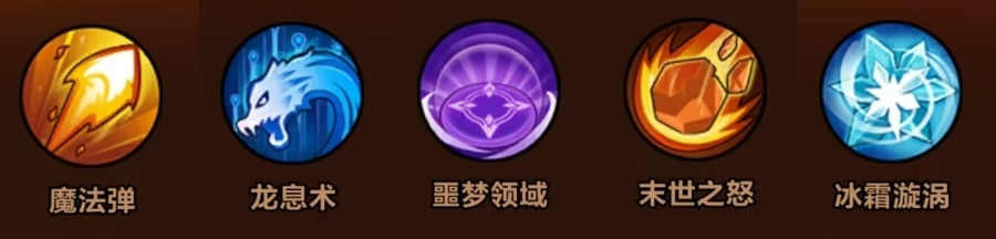 核心技能组合:魔法弹 + 龙息术 + 噩梦领域 + 末世之怒 + 冰霜漩涡