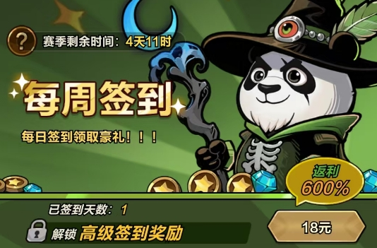 2、18元高级签到 购入后可连续7天领取进阶签到奖励,涵盖【太古石】、【高级宝箱券】、【钻石】等稀缺资源,适合希望稳定积累核心材料的中长期用户。