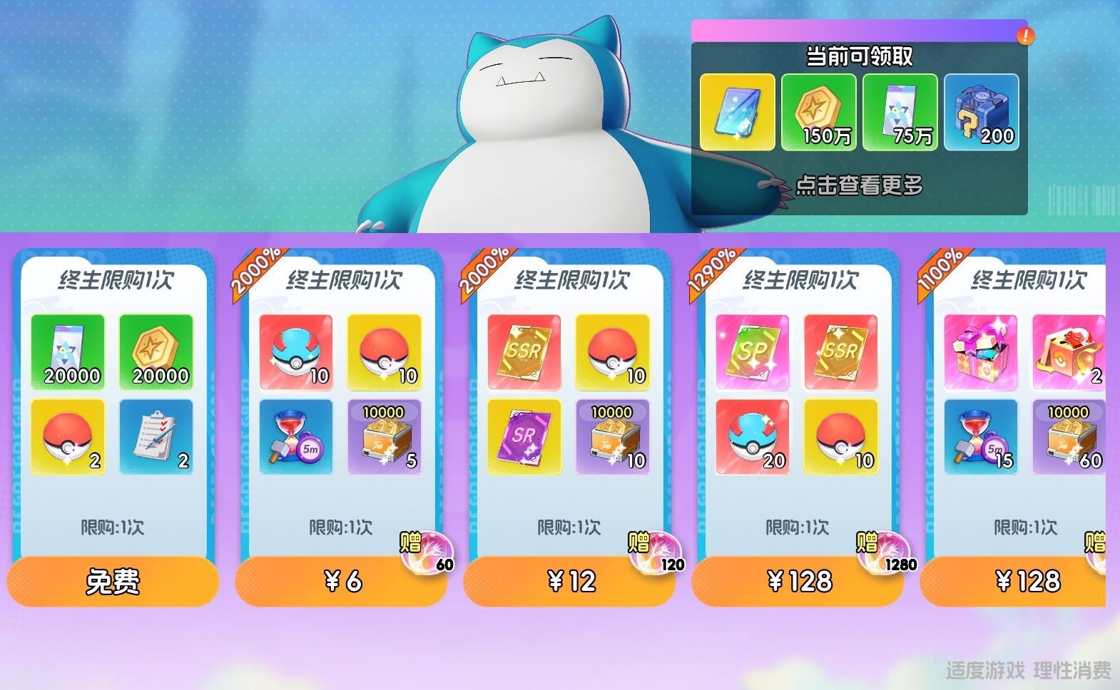 推荐购买顺序:6元限购礼包>128元自选SP礼包>其余礼包