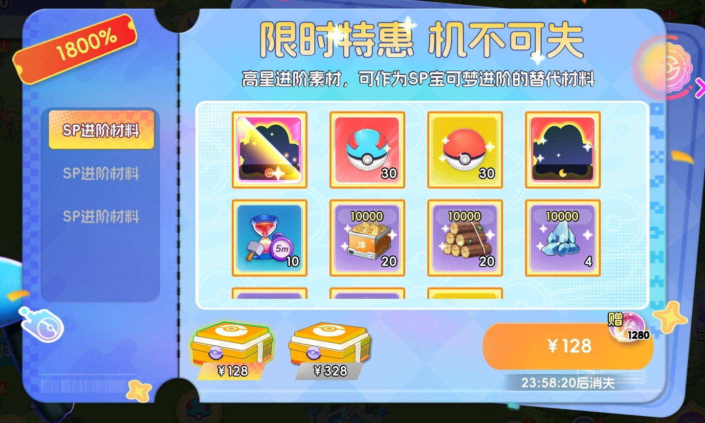 在宝可梦养成、玩法参与过程中随机触发,具有严格时效性,过期即下架。建议优先抢购所有SP类限时礼包,其次关注其他高价值限时商品。