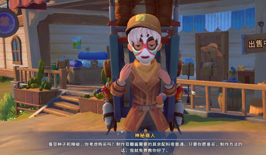 在《沙石镇时光》中,蚕豆种子并非通过常规采集或任务奖励直接获得,而是依赖一个关键NPC——神秘商人。该商人以随机方式出现在游戏世界中,其出现位置与时间均无固定规律,因此需要玩家主动探索、耐心等待。当成功遇见神秘商人后,可在其摊位上直接购买蚕豆种子与辣椒种子,二者均为制作“豆瓣酱”的必需原料。