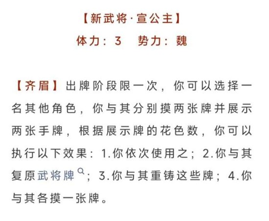 立即开始回合名将杀中储君、陈胜等拥有立即开始回合效果。储君即位后主公阵亡身份传位,回合立即跳到储君位置,储君回合结束后轮到其后置位进行,前置位角色回合被吞。例如貂蝉主公阵亡后龙且储君触发继承大统立即开始回合,龙且结束后直接由甄宓进行,前置位武将回合被跳过。