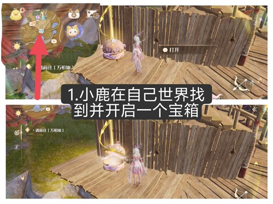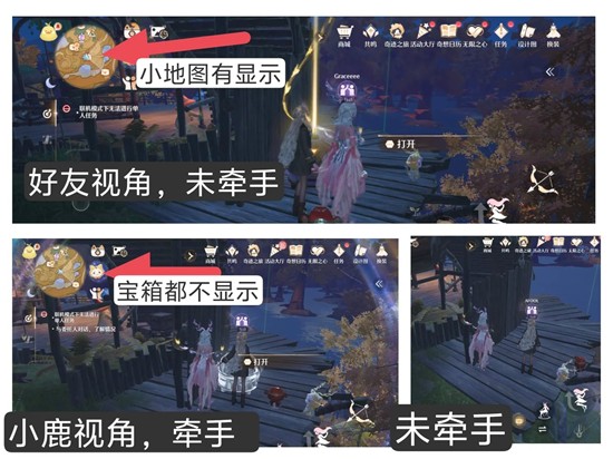 2)小鹿已开启,但好友未开启的宝箱,只会在好友地图显示图标,不管有没有牵手