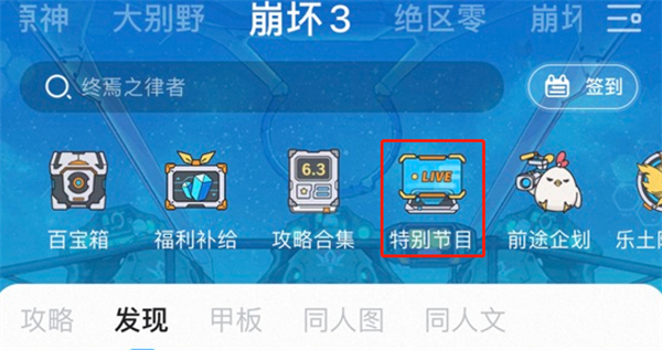 也能够通过点击米游社App的崩坏3版区中,首页上方的特别节目图标,即可进入直播间收看直播。