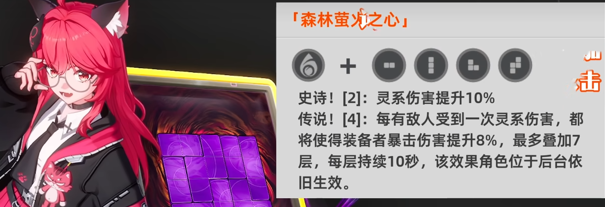 在装备配置方面,推荐以「弧盘」作为首选主词条套装,该套装可同步提升基础攻击力与暴击概率,完美契合娜娜莉的输出模型。副词条则建议搭配「萤火之心」,该效果可在角色处于驻场状态时,按比例提升后续技能的瞬时伤害倍率,有效放大其核心爆发链的最终结算数值。