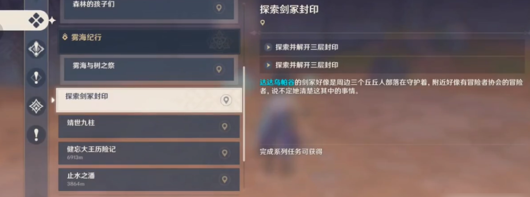 针对三个不同元素属性的封印,一套覆盖冰、火、雷元素的队伍组合是高效完成任务的前提。可选用凯亚处理北方冰柱,安柏或任意火元素角色处理东方火柱,丽莎或旅行者(雷元素)处理南方雷柱。战斗中应灵活运用元素反应,例如在面对大量怪物时,利用雷与水的感电、火与冰的融化等范围伤害效果,能显著提升清敌效率。尤其需部分角色的技能具有穿透护盾或造成范围伤害的效果,在挑战时间紧迫的擂台时能发挥重要作用。完成全部三处封印的解锁后,即可返回达达乌帕谷中心的剑冢区域。之前阻挡玩家的三层结界将全部消失,可以开启位于剑冢中央的珍贵宝箱。任务奖励通常包含原石、四星武器原胚、圣遗物及各类素材,对于游戏前期的发展是颇为重要的一次资源获取。