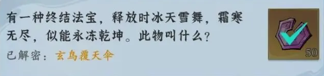 10、有一种终结法宝,释放时冰天雪舞,霜寒无尽,似能永冻乾坤。此物叫什么?玄鸟覆天伞