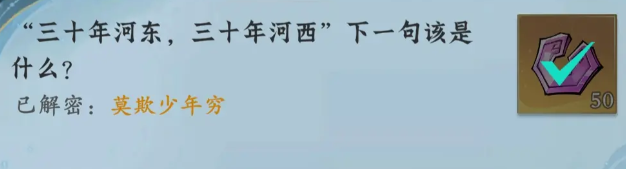 1、"三十年河东,三十年河西"下一句该是什么?莫欺少年穷
