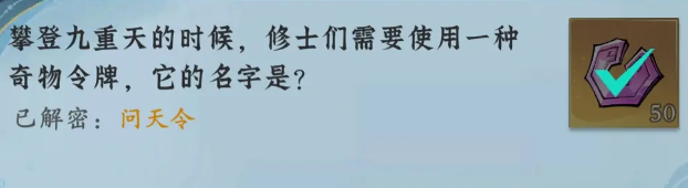 2、攀登九重天的时候,修士们需要使用一种奇物令牌,它的名字是?问天令