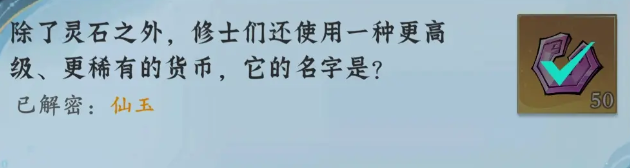 4、除了灵石之外,修士们还使用一种更高级、更稀有的货币,它的名字是?仙玉