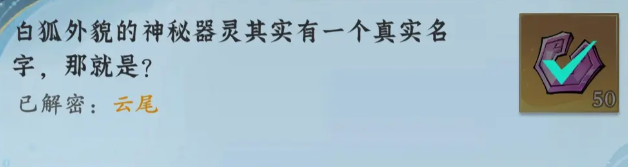 5、白狐外貌的神秘器灵其实有一个真实名字,那就是?云尾
